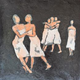 « Pour Corinne Malfreyt s’inspirant de la chorégraphie de Pina BAUSCH « Le sacre du printemps » d’Igor STRAVINSKY, l’espace entre les corps est encore de la danse. Elle installe sur ses toiles une architecture de rythmes et de nuances chromatiques, déclinaison de gris parfois ponctuée de rouges résonnances où l’élan des danseurs cherche et trouve sa place. Correspondance du fond et des formes, pour rendre l’émotion ressentie, la matière colorée, dans les limites suggérées du dessin, danse, palpite et vibre en cadences harmoniques, en équilibres fragiles, l’instant de la composition.(...) Piero Cavalleri (critique d'art)