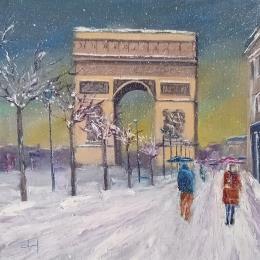 Peinture Superbe!il neige à Paris  par Degabriel Véronique | Tableau Figuratif Paysages Urbain Scènes de vie Huile