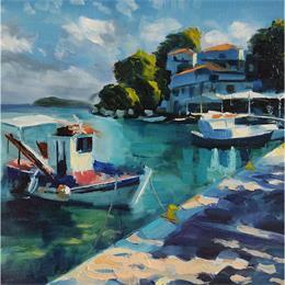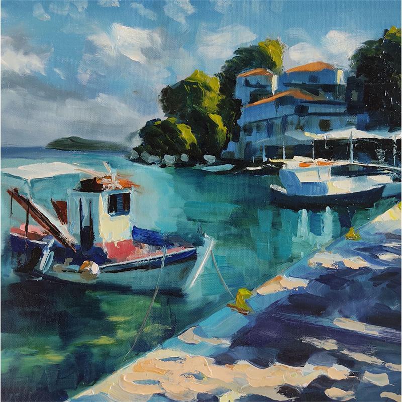 L'artiste a utilisé la technique Huile pour créer cette peinture petit format sur Toile de style Figuratif sur les thèmes Paysages, Marine.