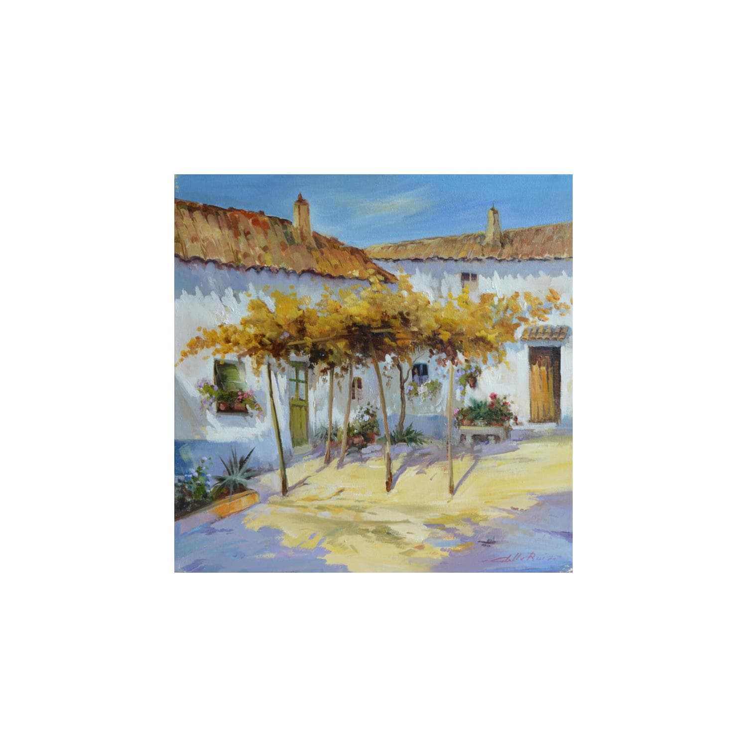 Peinture Patio con parra par Cabello Ruiz Jose | Tableau Figuratif Paysages Huile