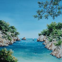 Peinture Cadre bleu par Blandin Magali | Tableau Figuratif Paysages Huile
