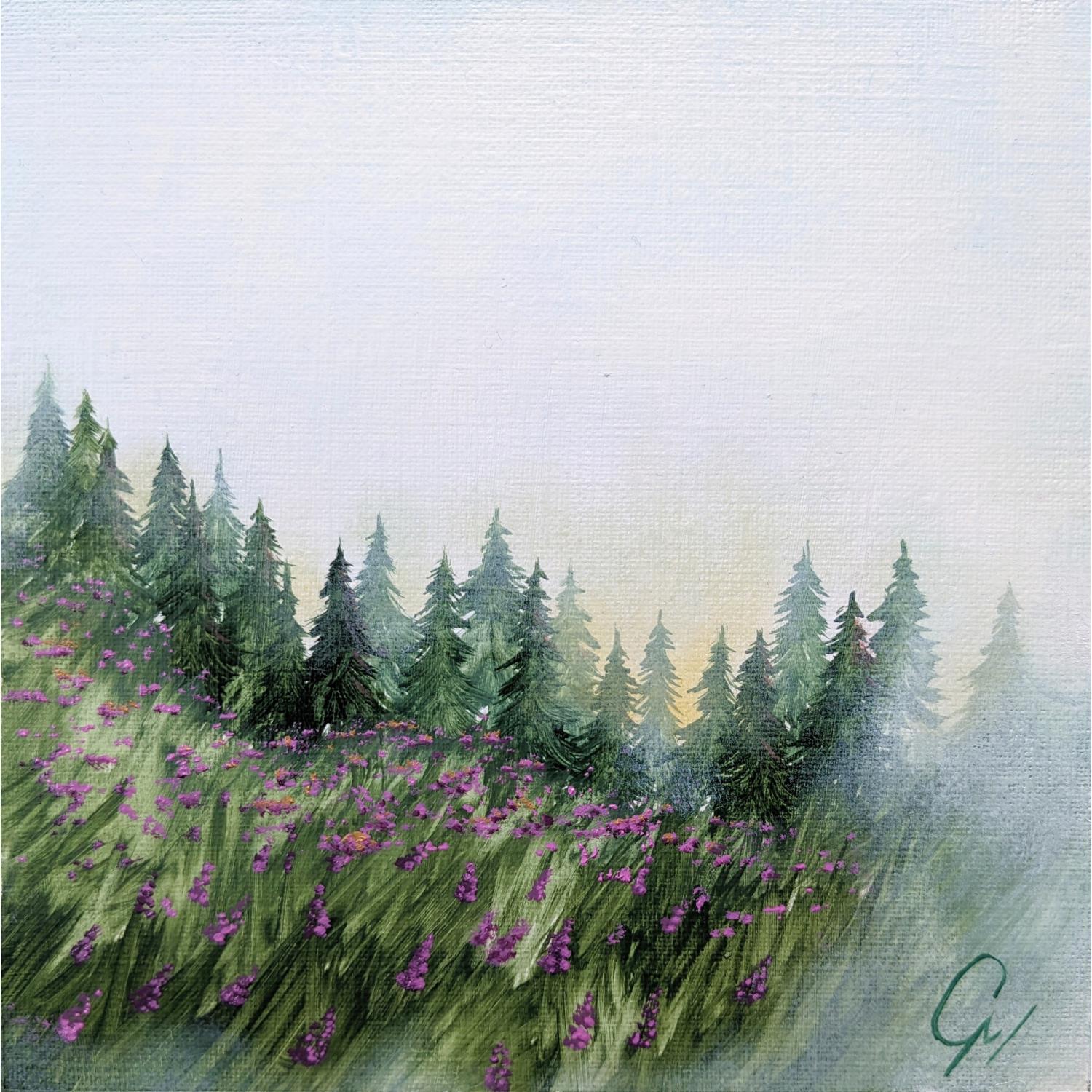 Couché de soleil du printempsPeinture Couché de soleil du printemps par Pressac Clémence | Tableau Figuratif Paysages Huile