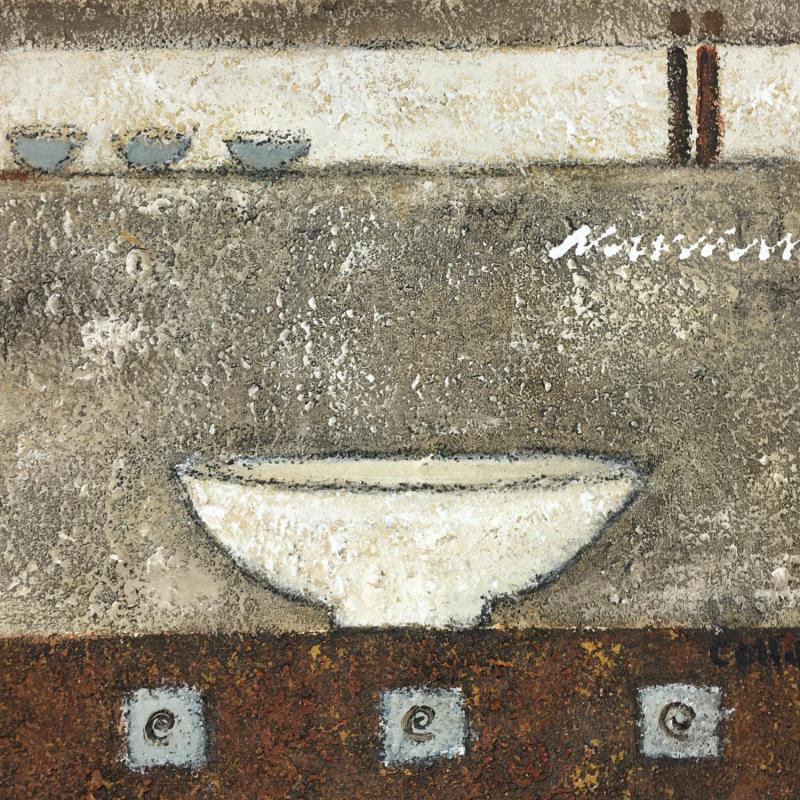 L'artiste a utilisé les techniques Huile, Acrylique pour créer cette peinture petit format sur toile de style Figuratif sur le thème scènes de vie.