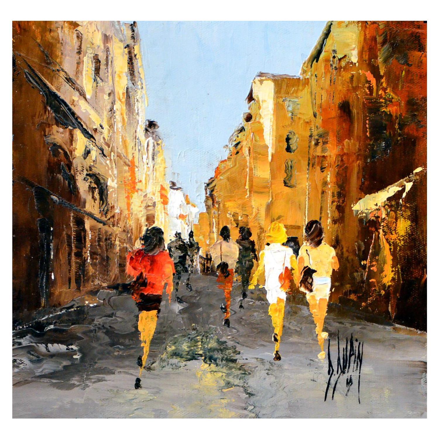 L'artiste a utilisé la technique Huile pour créer cette peinture petit format sur Toile de style Figuratif sur le thème Scènes de vie.