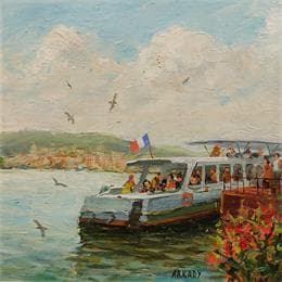 Cette oeuvre d'art contemporain unique et originale "A la découverte de Lyon, balade en bateau" a été réalisée par l'artiste contemporain Arkady.