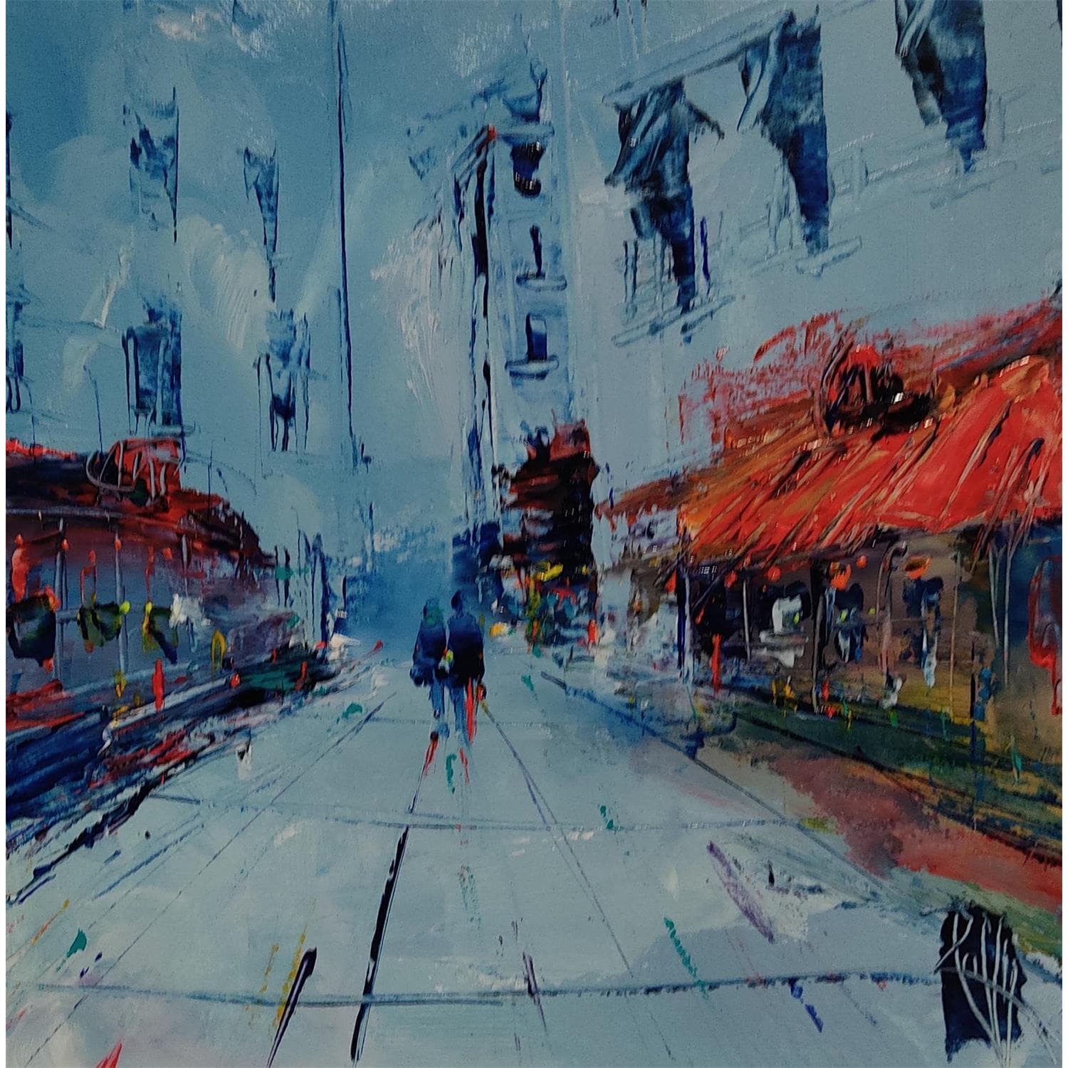 Balade à deuxPeinture Balade à deux par Raffin Christian | Tableau Figuratif Urbain Huile
