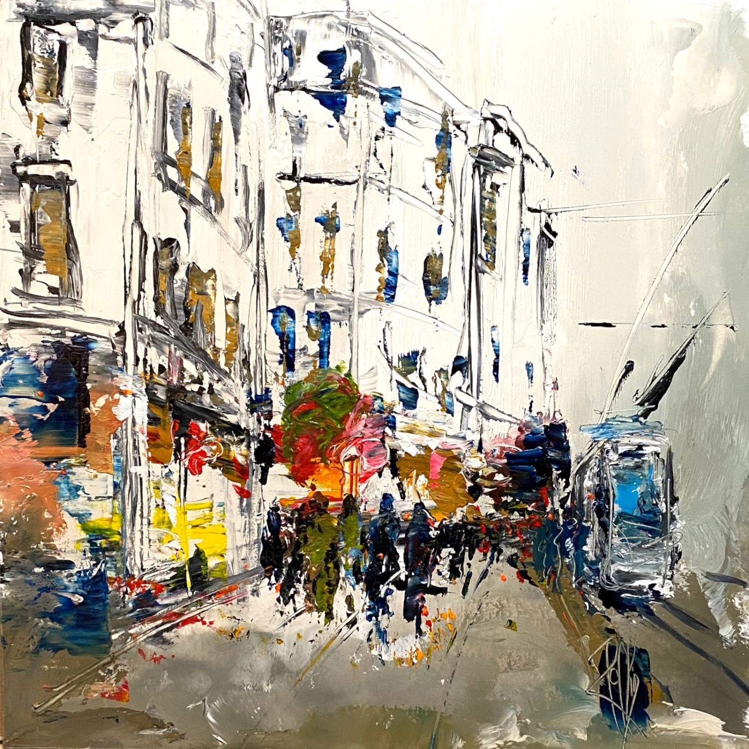 Peinture Centre Ville par Raffin Christian | Tableau Figuratif Urbain Huile