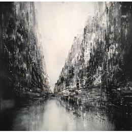 L'artiste a utilisé la technique Huile pour créer cette peinture grand format sur toile de style Figuratif sur le thème Urbain.