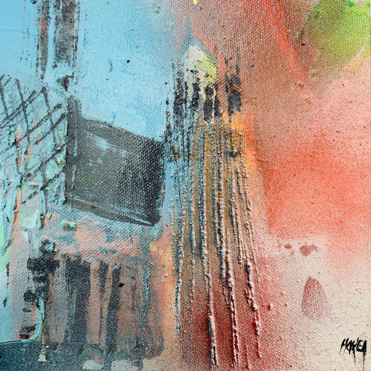 L'artiste a utilisé la technique Huile pour créer cette peinture petit format sur toile de style Figuratif sur le thème Urbain.