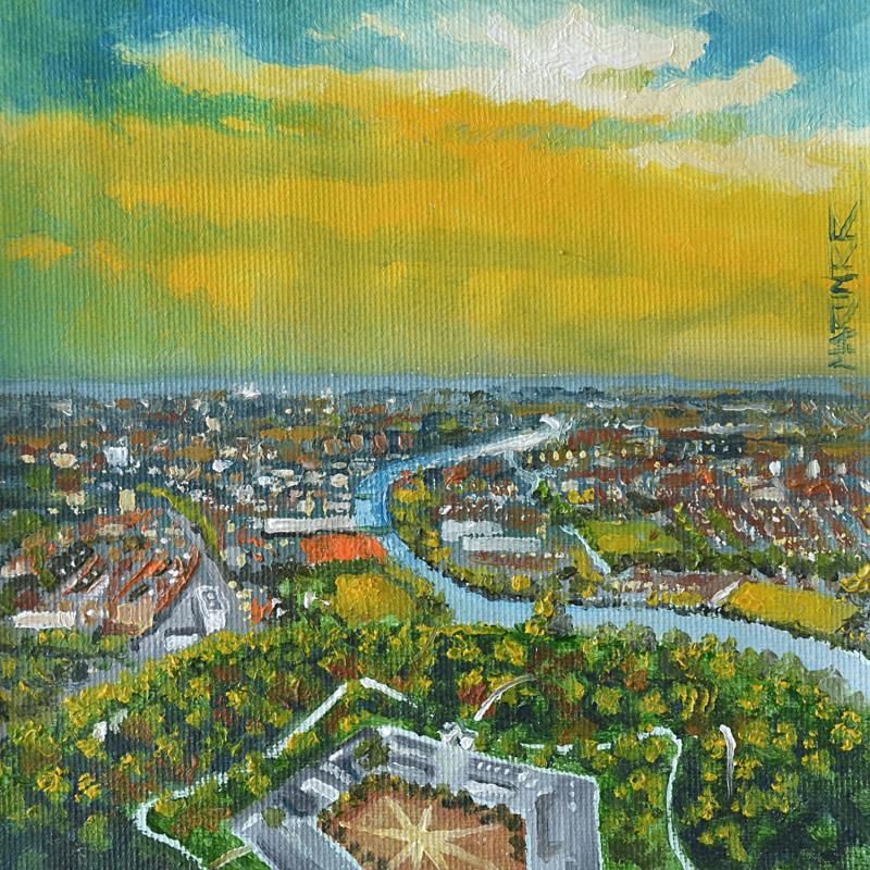 L'artiste a utilisé la technique Huile pour créer cette peinture petit format sur Toile de style Figuratif sur le thème Urbain.