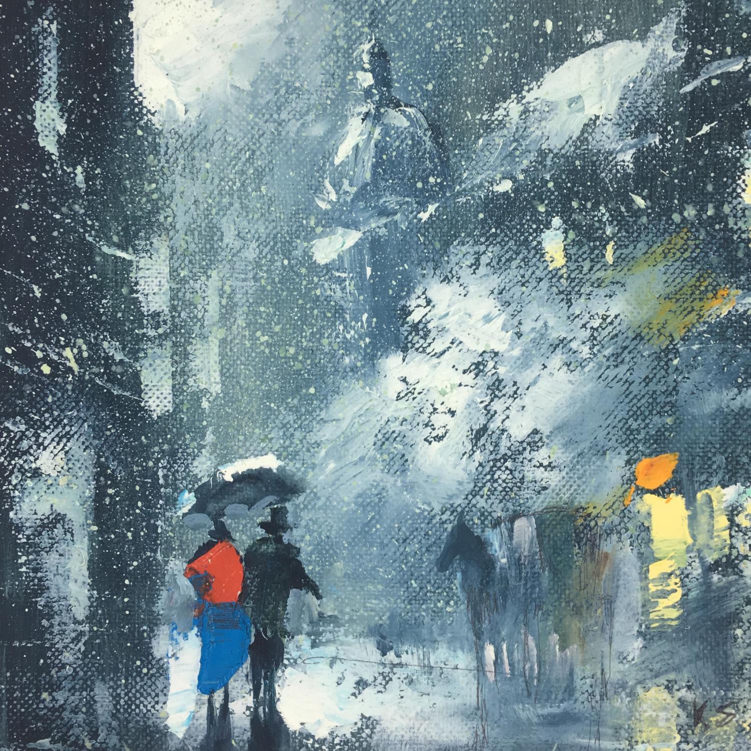 L'artiste a utilisé la technique Huile pour créer cette peinture petit format sur toile de style Figuratif sur le thème Urbain.
