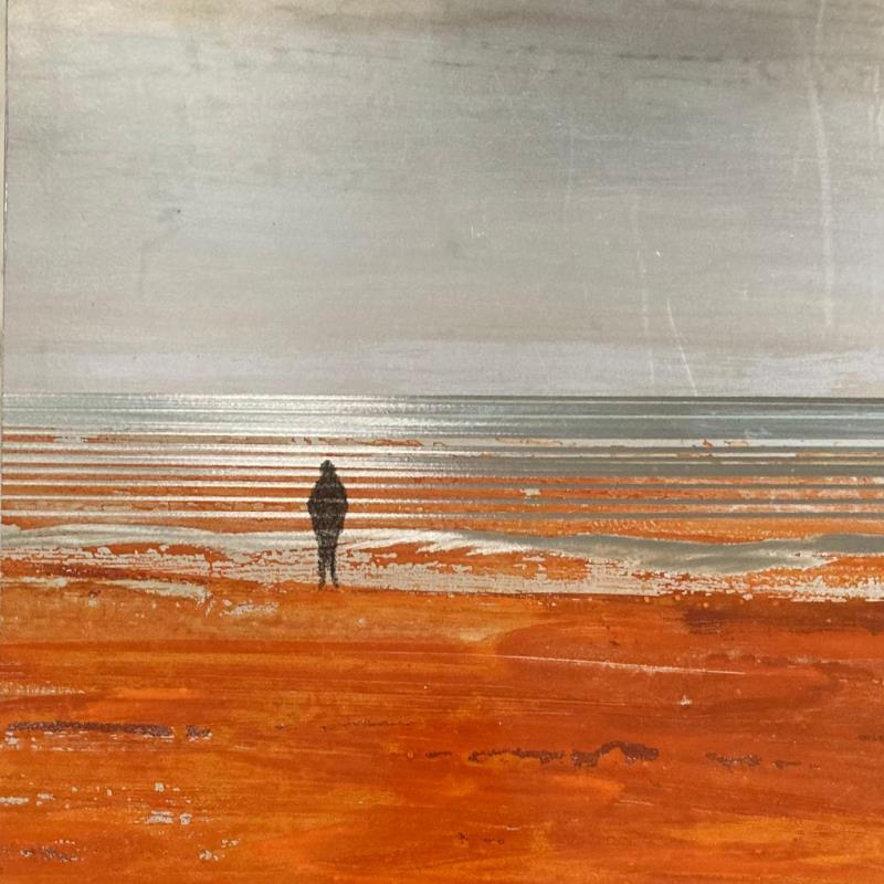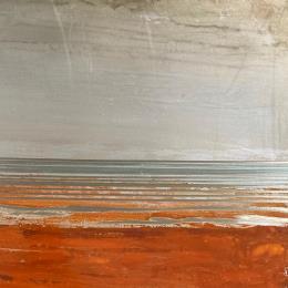 L'artiste a utilisé la technique d’oxydation avec ajouts de pigments métallisés pour créer cette peinture grand format sur tôle d’acier de style Figuratif sur le thème Paysages.
