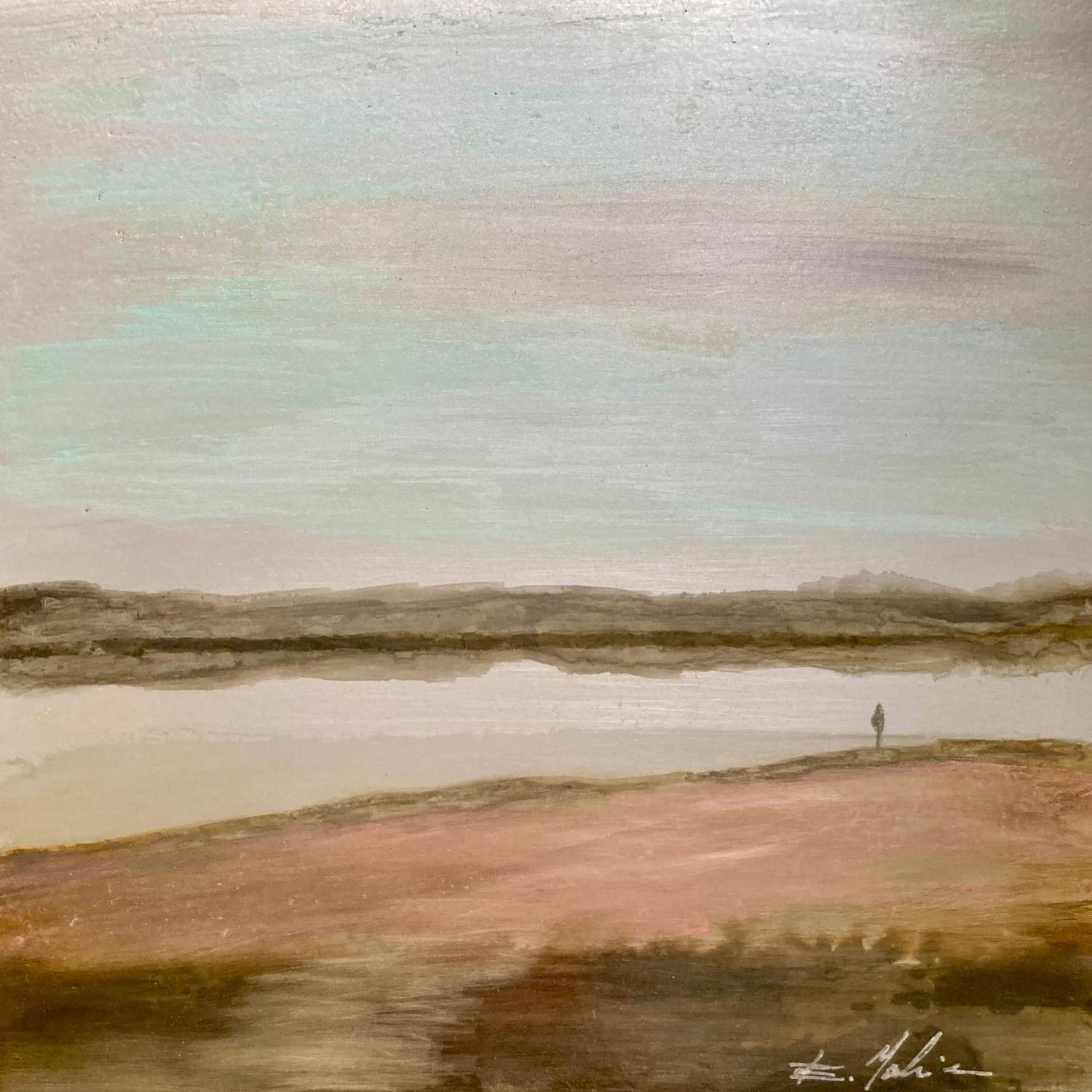 L'artiste a utilisé la technique d’oxydation sur tôle d’acier pour créer cette peinture petit format sur Métal de style Figuratif sur le thème Paysages.