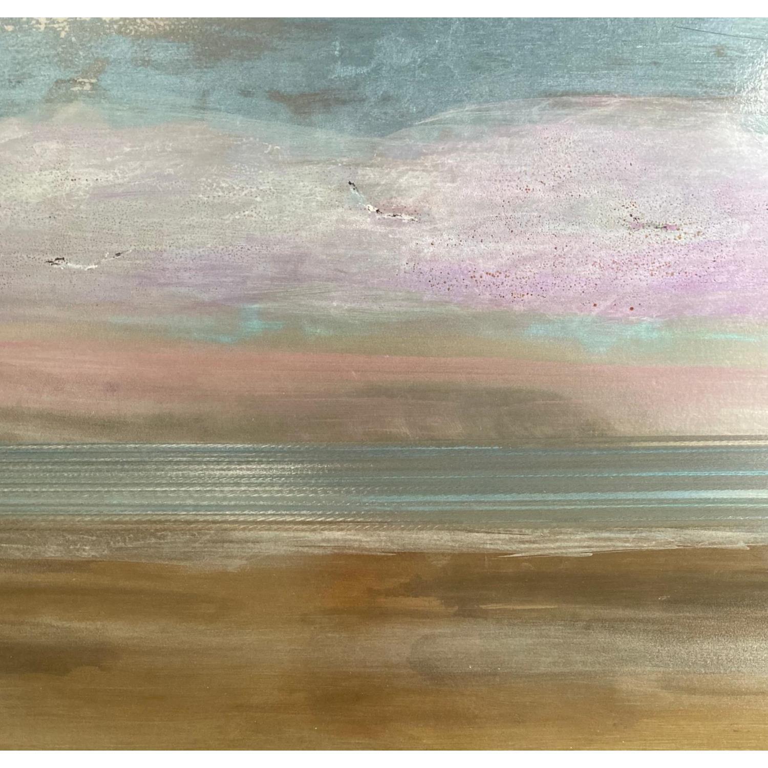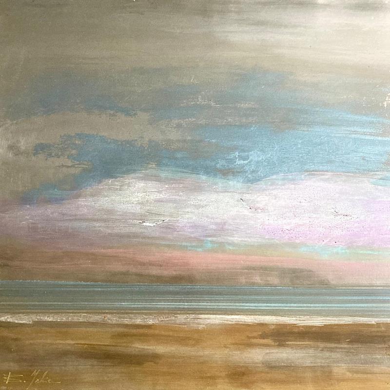 L'artiste a utilisé la technique d’oxydation avec ajouts de pigments métallisés pour créer cette peinture grand format sur tôle d’acier de style Figuratif sur le thème Paysages.