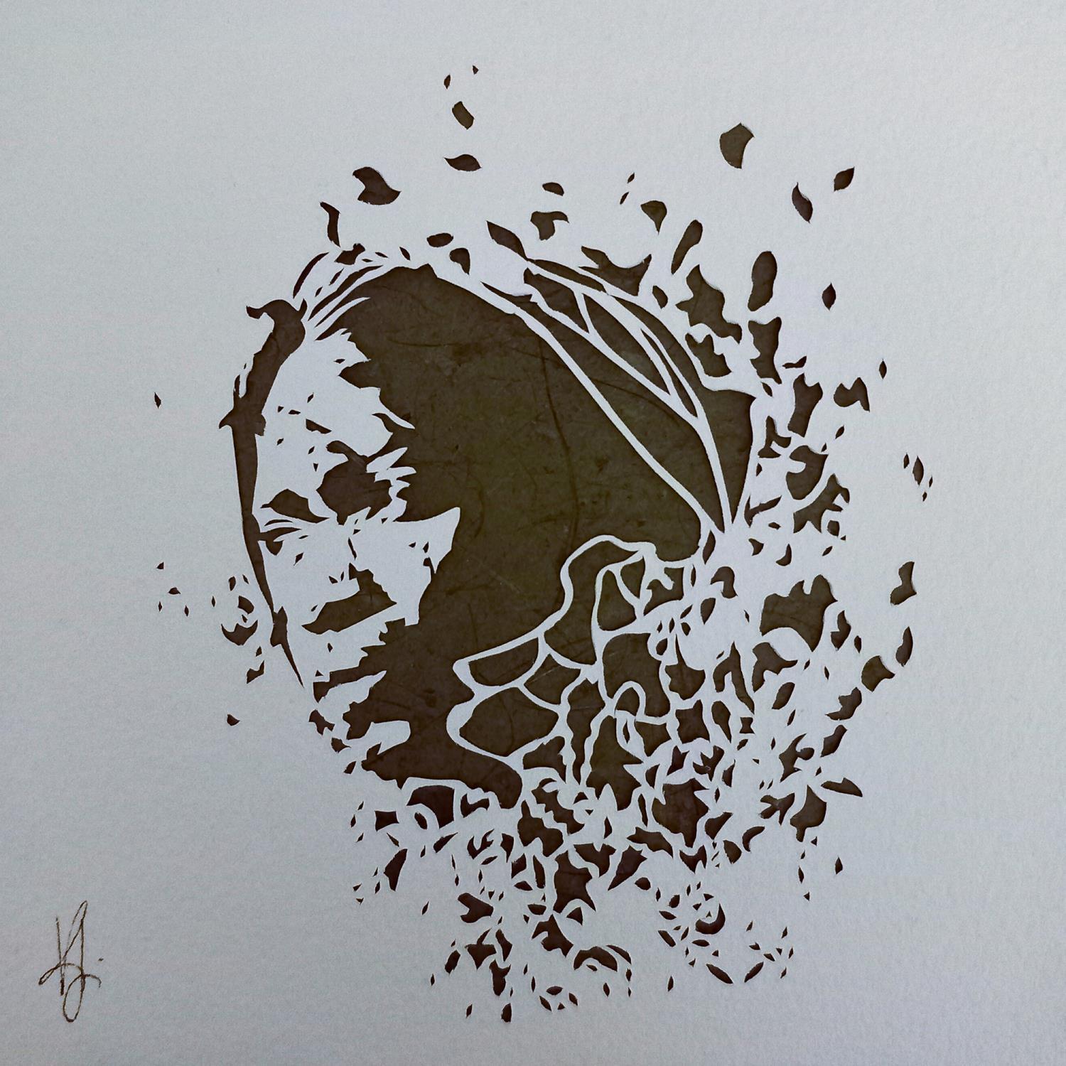 Valentine Louafi a toujours été fascinée par les jeux d’ombres et de lumières. Lors de ses études de cinéma, elle réalise de nombreux cours métrages où des silhouettes s’animent et défend un mémoire sur le sujet. Après un détour par une carrière de graphiste, elle décide de se consacrer de nouveau à sa pratique artistique, abandonnant le dessin pour le « paper art » La simplicité des outils utilisés et les sujets choisis sont en parfaite adéquation avec ses valeurs anticonsuméristes et humanistes. Ses modèles viennent du monde entier, et elle choisit particulièrement des sujets qui lui permettent d’interroger la notion toute relative de beauté, en mettant en valeur des pratiques de modifications corporelles ou de body-art. Elle travaille aujourd’hui au sein du collectif « The Paper Artist » qui s’associe à des associations qui œuvrent pour l’émancipation des femmes dans le monde. Curieuse des autres, elle pense ses œuvres comme une invitation à se découvrir et à créer des liens malgré les différences.