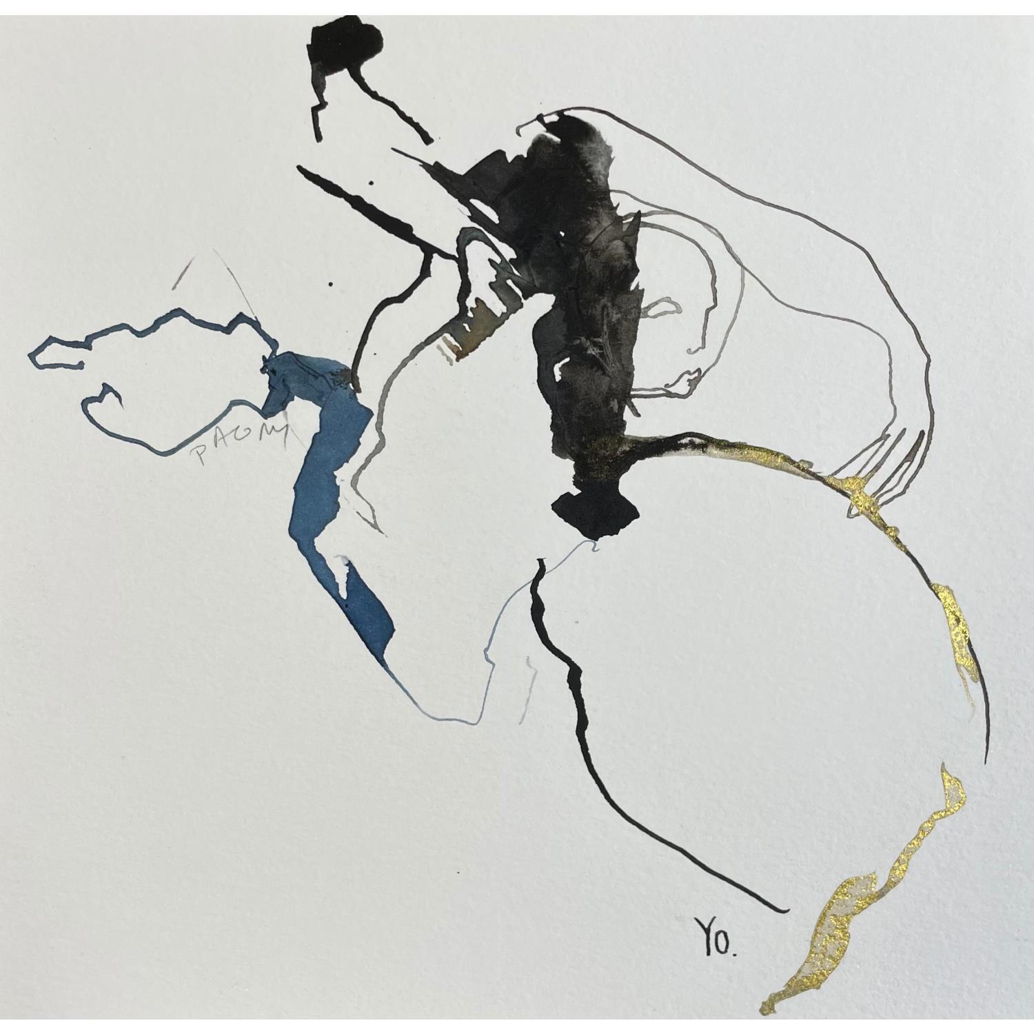 L'artiste a utilisé différentes techniques pour créer cette peinture petit format sur Papier de style Figuratif sur les thèmes Minimaliste, Noir & blanc, Nu.