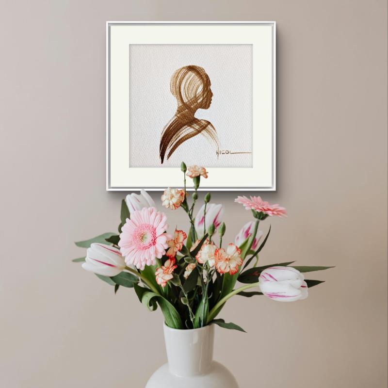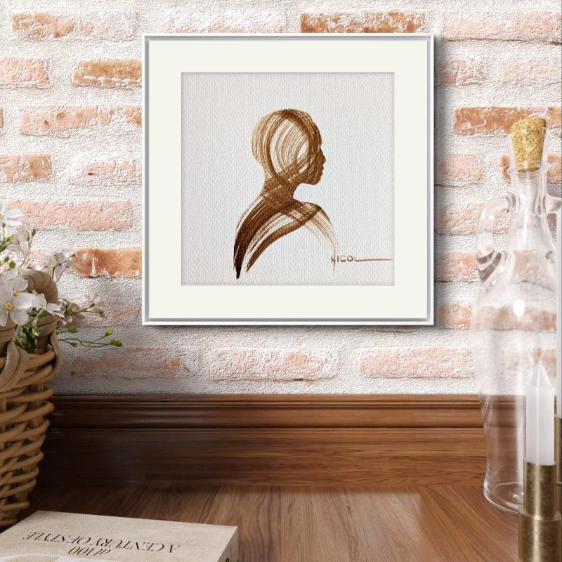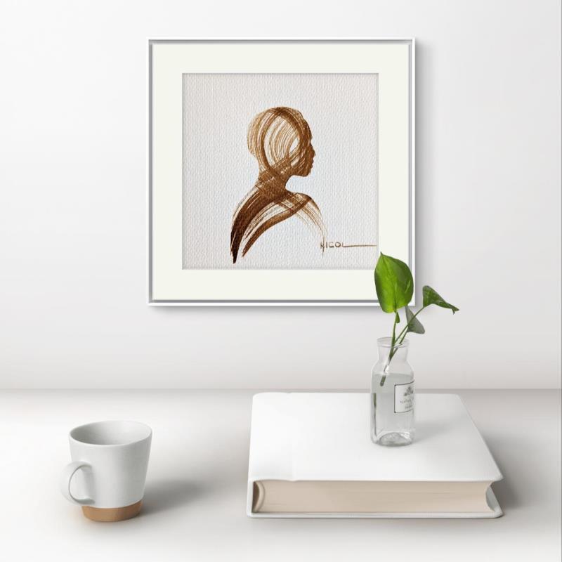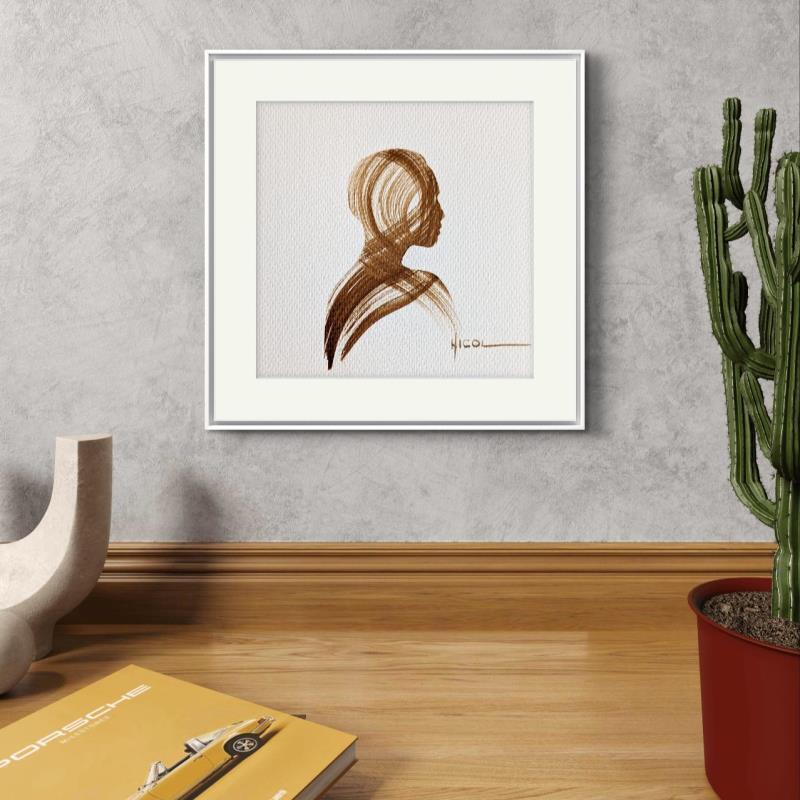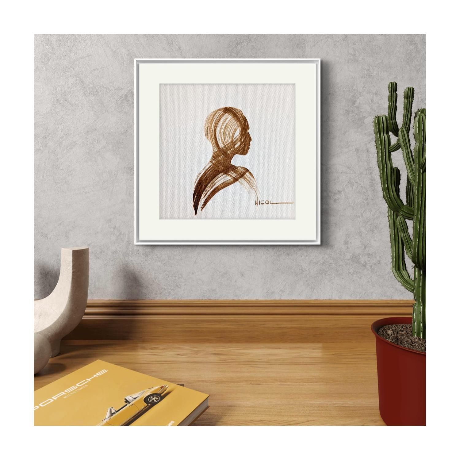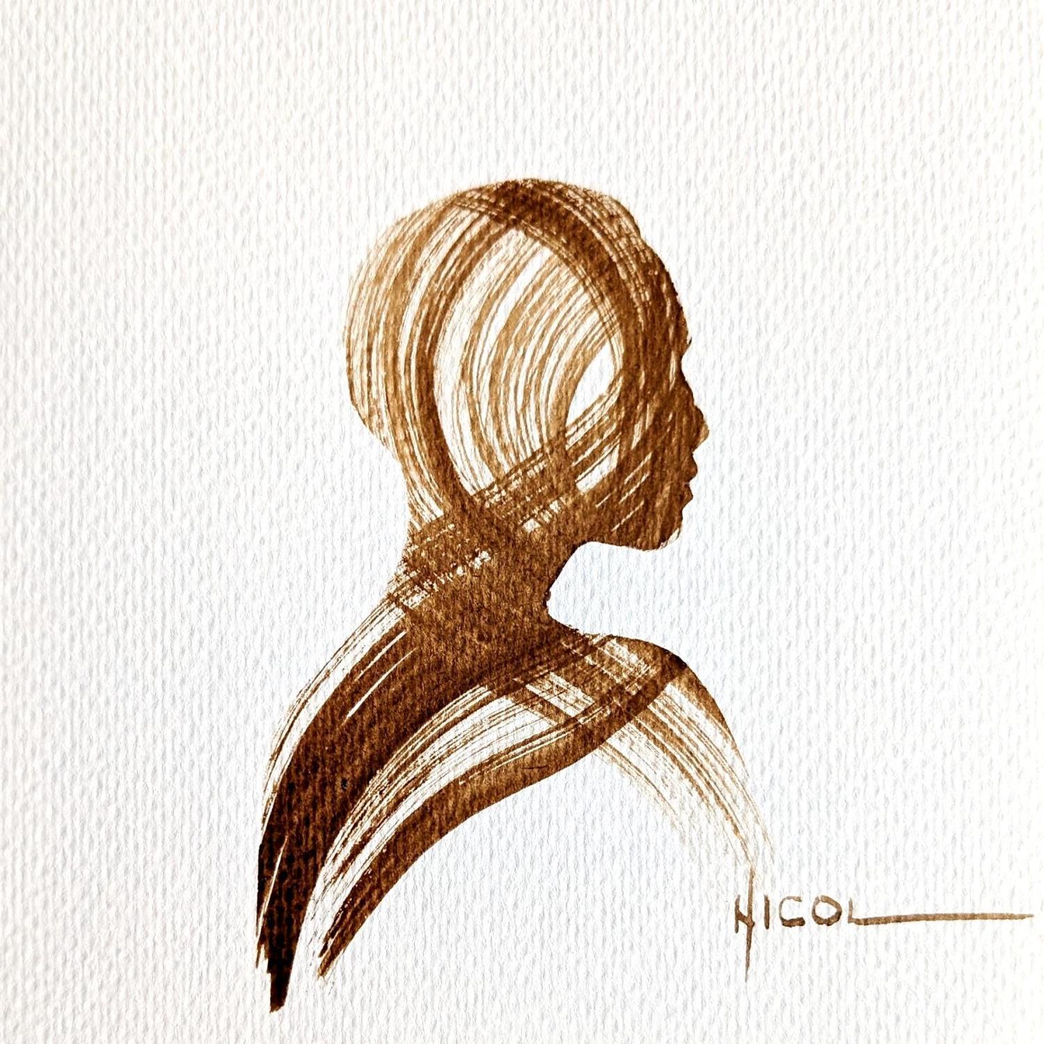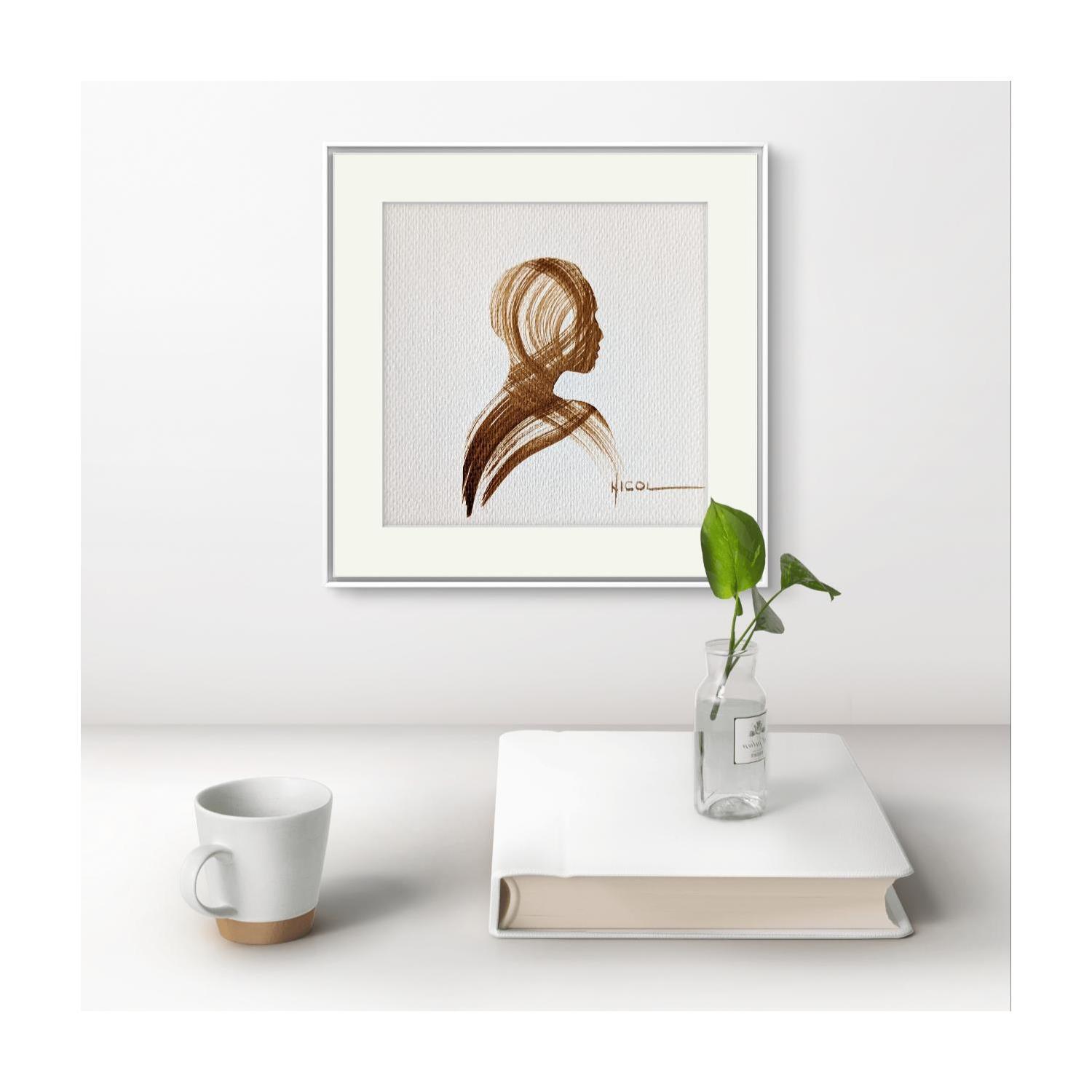 L'artiste a utilisé la technique Papier pour créer cette peinture petit format sur Papier de style Figuratif sur les thèmes Minimaliste, Noir & blanc, Portraits.