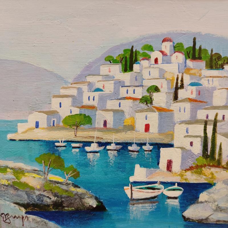 Village grec IIPeinture Village grec II par Burgi Roger | Tableau Figuratif Paysages