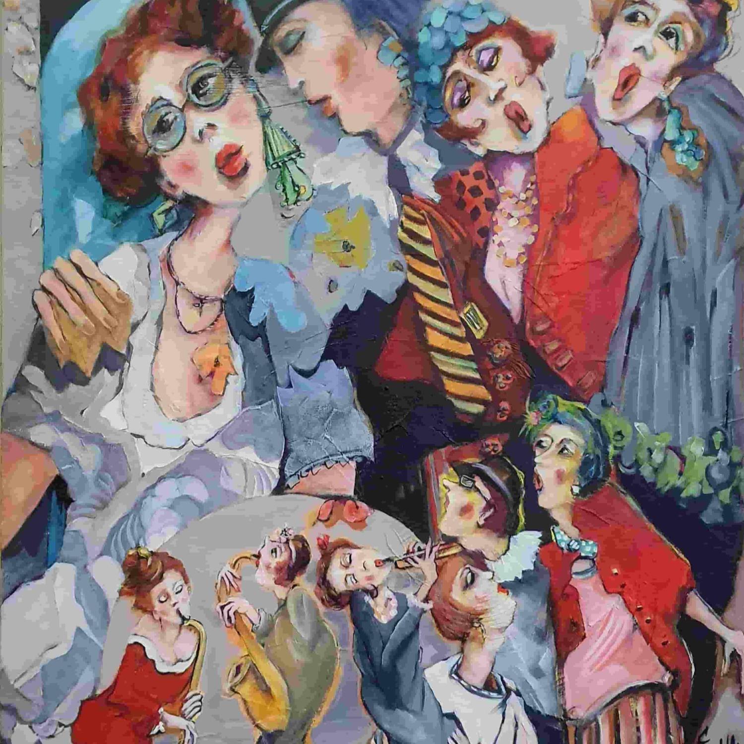 Cette oeuvre d'art contemporain unique et originale "Le petit monde enjoué du jazz" a été réalisée par l'artiste contemporain Garilli Nicole.