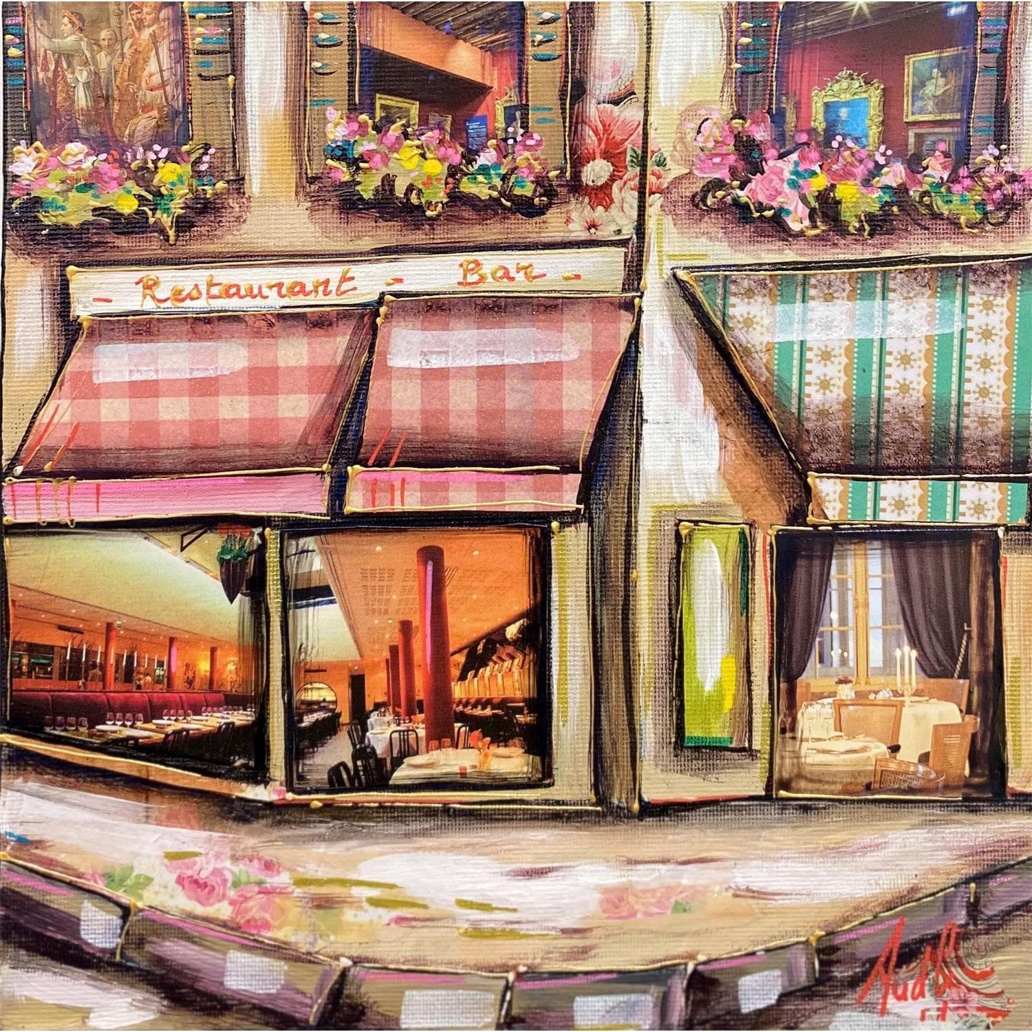 Cette oeuvre d'art contemporain unique et originale "Restaurant bar" a été réalisée par l'artiste contemporain Aud C.