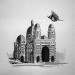 L'artiste a utilisé différentes techniques pour créer cette peinture petit format sur Papier de style Figuratif sur les thèmes Urbain, Animaux, Noir & blanc.