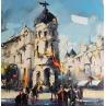 L'artiste a utilisé différentes techniques pour créer cette peinture petit format au style singulier.