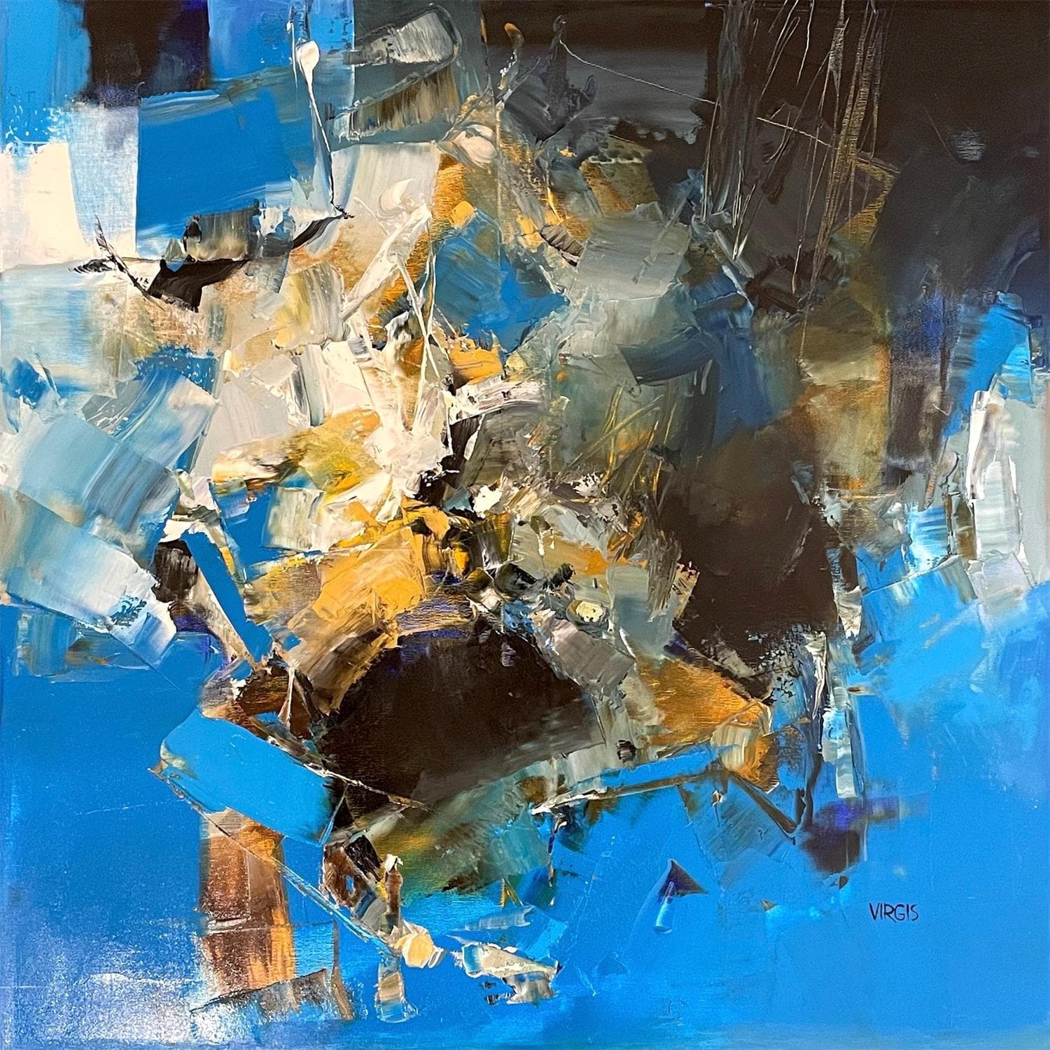 Dans les années 90, il commence à proposer ses œuvres dans différentes expositions locales. A l’époque, le travail artistique de Marc Chagall nourrit son inspiration. La rencontre de deux artistes françaises, Anne de Beaufort et Michèle Volsy, constitue un tournant dans sa vie d’artiste. Virgis change instinctivement la nature de sa peinture et s’adonne à la peinture abstraite.