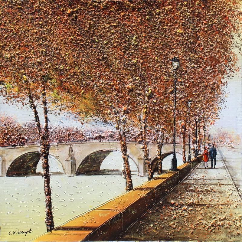 Cette oeuvre d'art contemporain unique et originale "Coucher de soleil sur l'île saint-louis" a été réalisée par l'artiste contemporain Dessapt Elika.