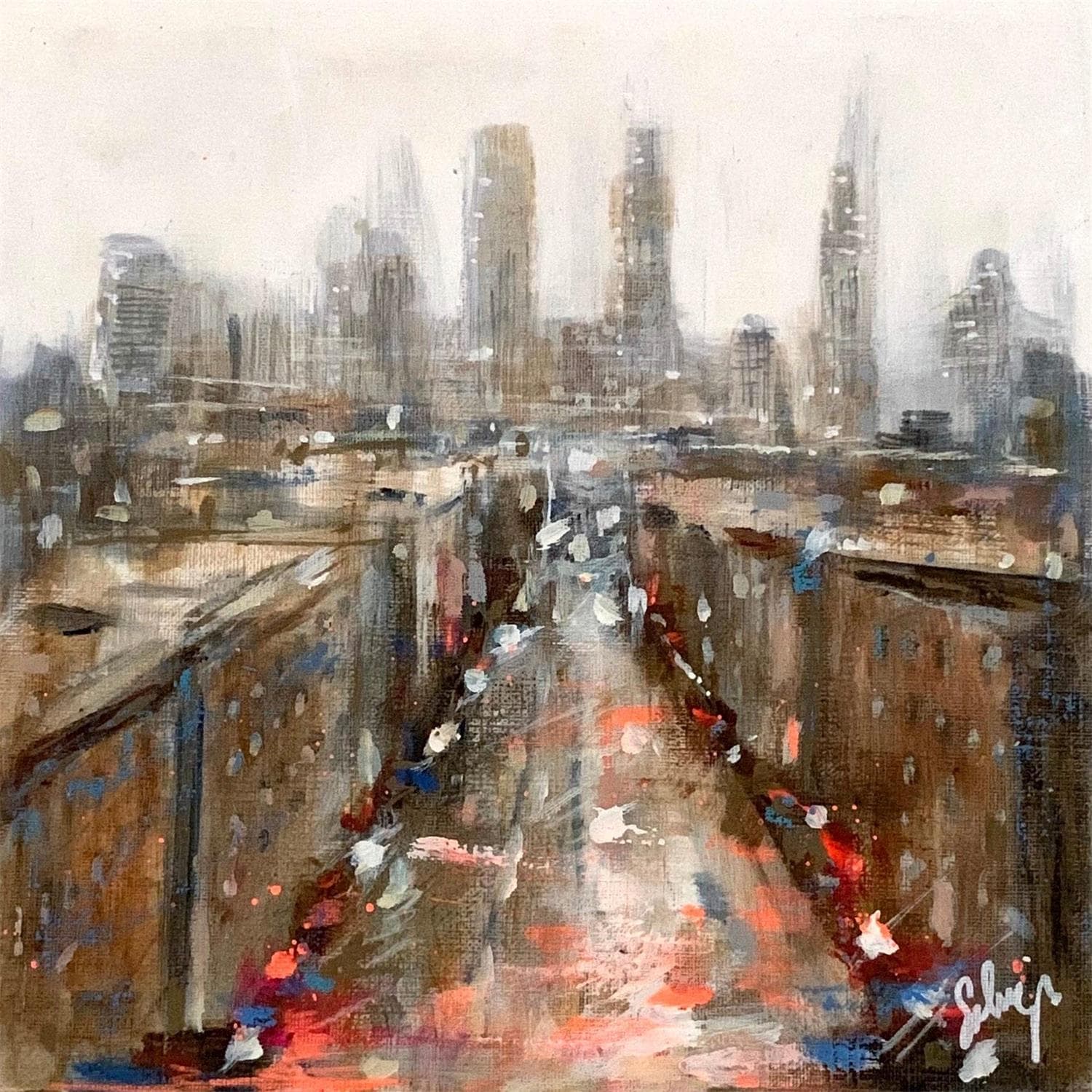 L'artiste a utilisé la technique Acrylique pour créer cette peinture petit format sur papier de style Impressionnisme sur le thème Urbain.