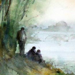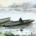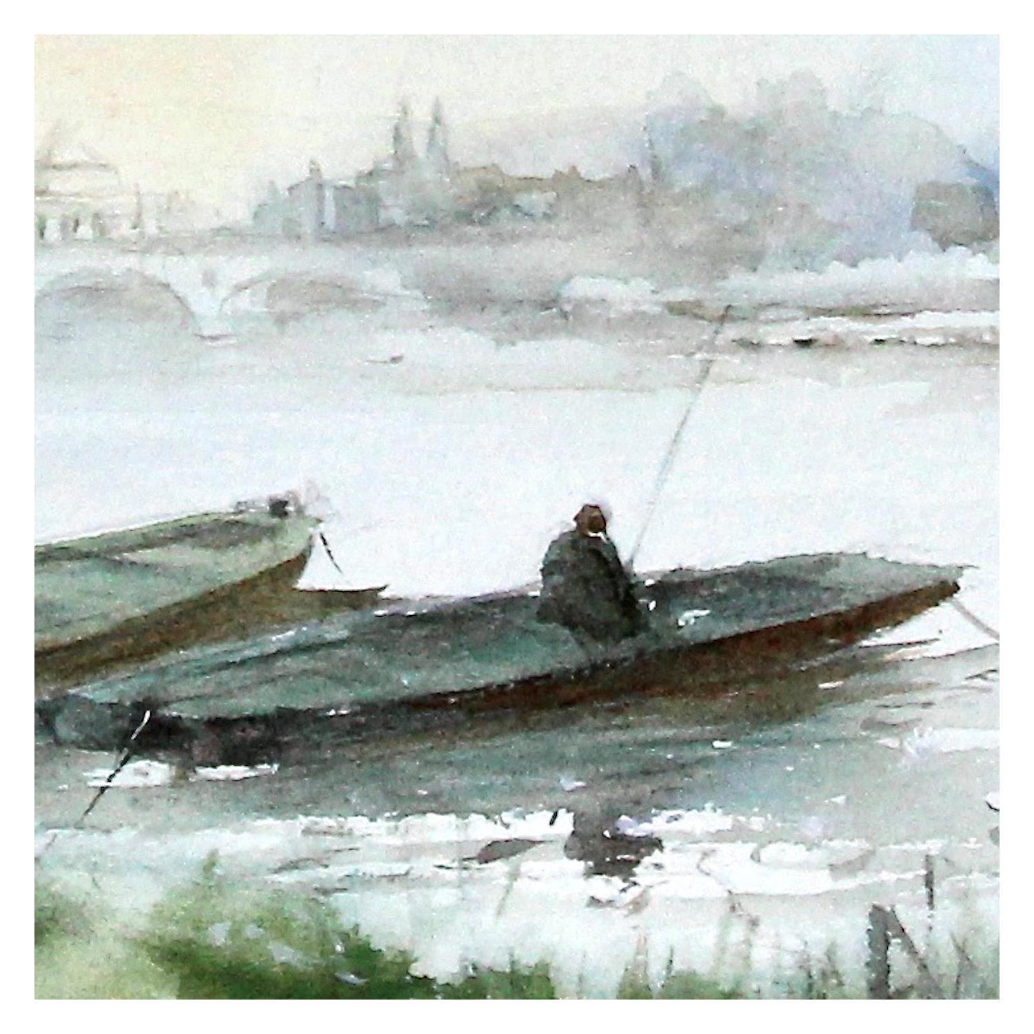 Peinture Barques en Touraine par Gutierrez | Tableau Impressionnisme Paysages Aquarelle