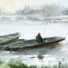 Barques en TourainePeinture Barques en Touraine par Gutierrez | Tableau Impressionnisme Paysages Aquarelle