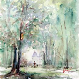 Retour du château de Chaumont-sur-LoirePeinture Retour du château de Chaumont-sur-Loire par Gutierrez | Tableau Impressionnisme Paysages Aquarelle
