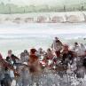 Le charme des guinguettes à ToursPeinture Le charme des guinguettes à Tours par Gutierrez | Tableau Impressionnisme Urbain Aquarelle