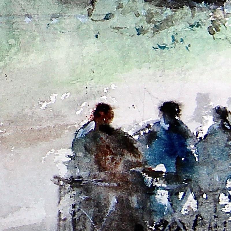 L'artiste a utilisé la technique Aquarelle pour créer cette peinture petit format de style Figuratif sur le thème Urbain.