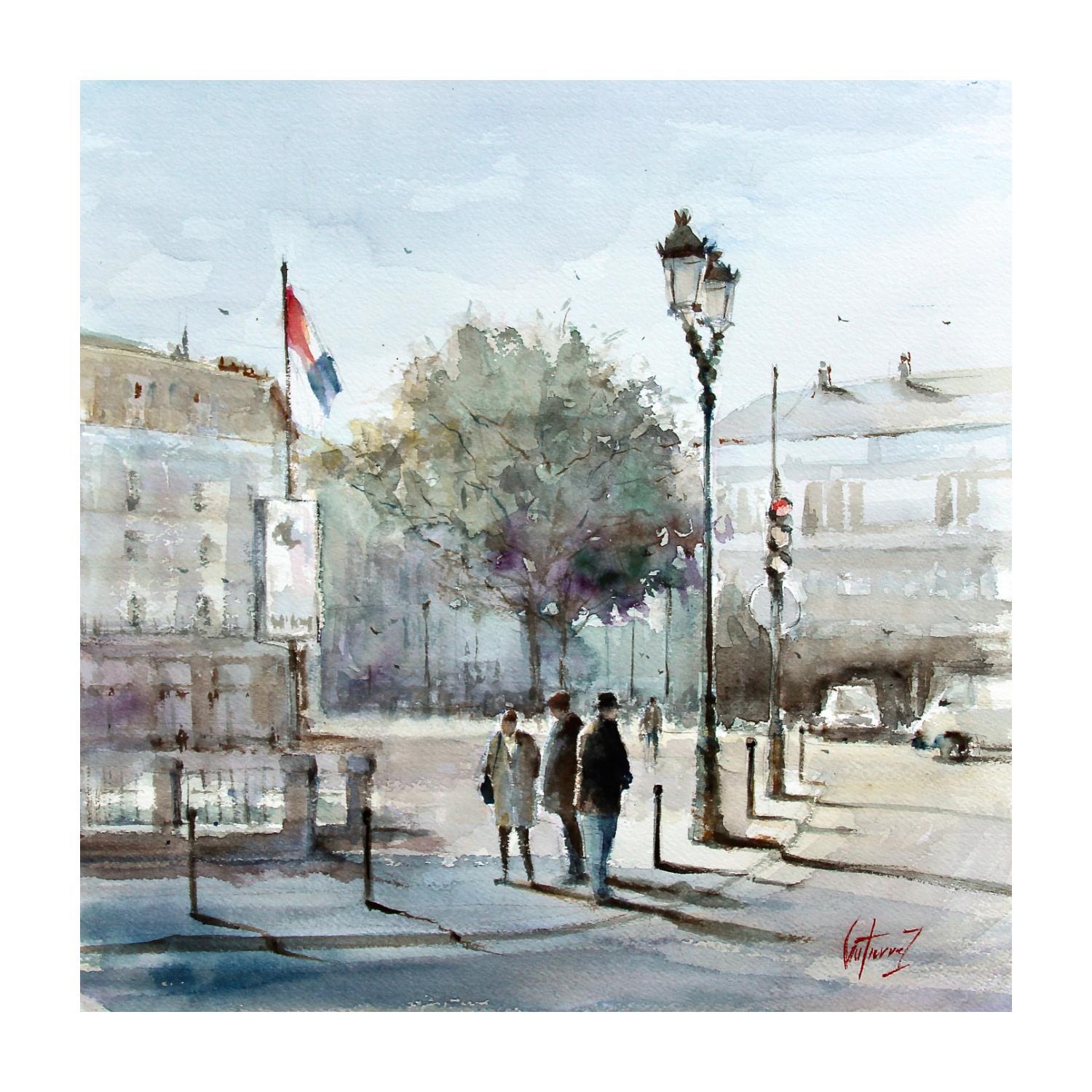 Peinture Pigalle - Paris par Gutierrez | Tableau Impressionnisme Urbain Aquarelle