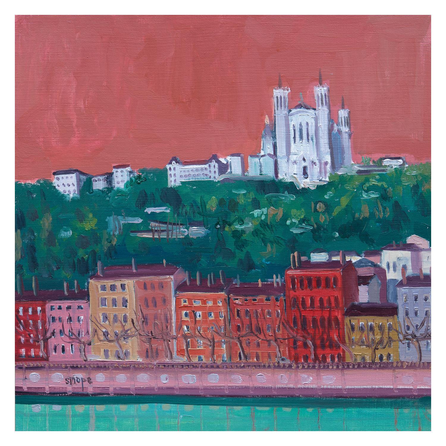 Cette oeuvre d'art contemporain unique et originale "Fourvière vue de la Saône" a été réalisée par l'artiste contemporain Sirope Rémy.
