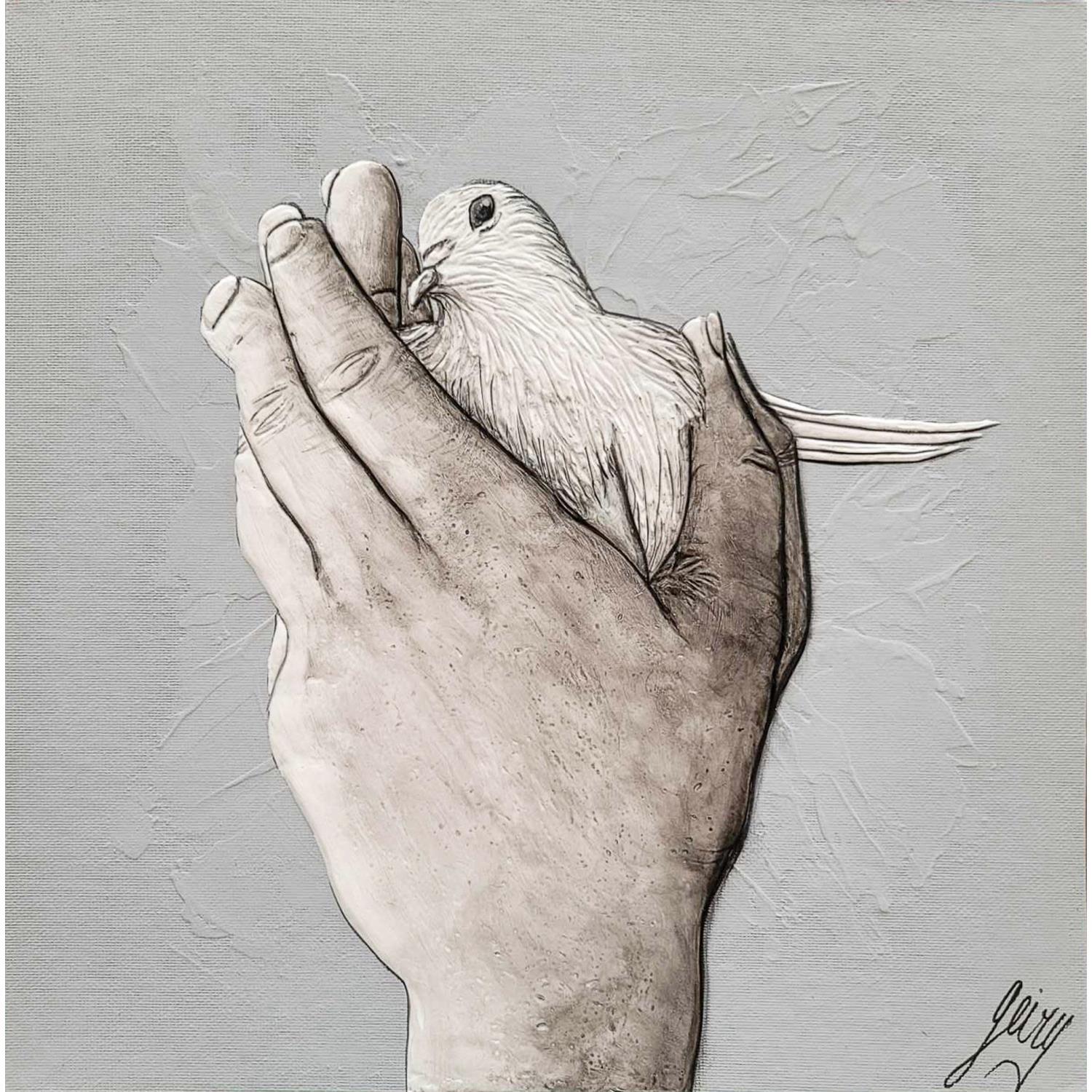 Cette oeuvre d'art contemporain unique et originale "Colombe " a été réalisée par l'artiste contemporain Geiry.
