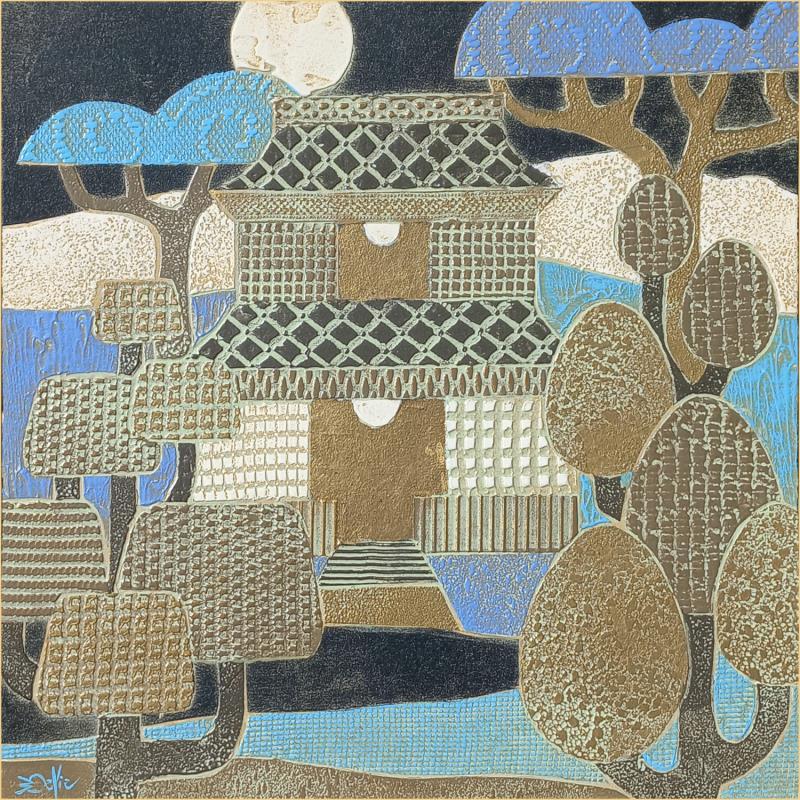 Cette oeuvre d'art contemporain unique et originale " MAISON AU JAPON" a été réalisée par l'artiste contemporain Devie Bernard .