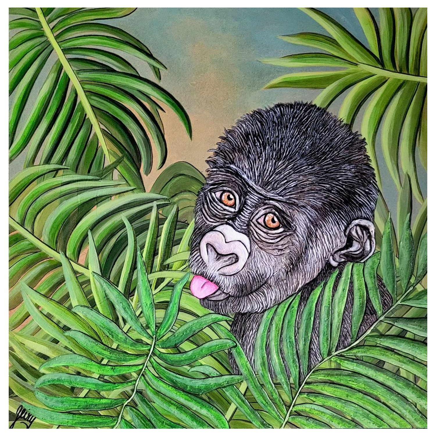 Cette oeuvre d'art contemporain unique et originale "Gorillon" a été réalisée par l'artiste contemporain Geiry. L'artiste a utilisé différentes techniques pour créer cette peinture petit format sur Toile de style Pop-art.