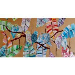 L'artiste a utilisé différentes techniques pour créer cette peinture grand format sur Carton toilé de style Matiérisme.