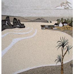L'artiste a utilisé la technique Sable pour créer cette peinture petit format sur Papier de style Matiérisme sur les thèmes Marine, Paysages.
