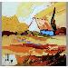 L'artiste a utilisé différentes techniques pour créer cette peinture petit format au style singulier.
