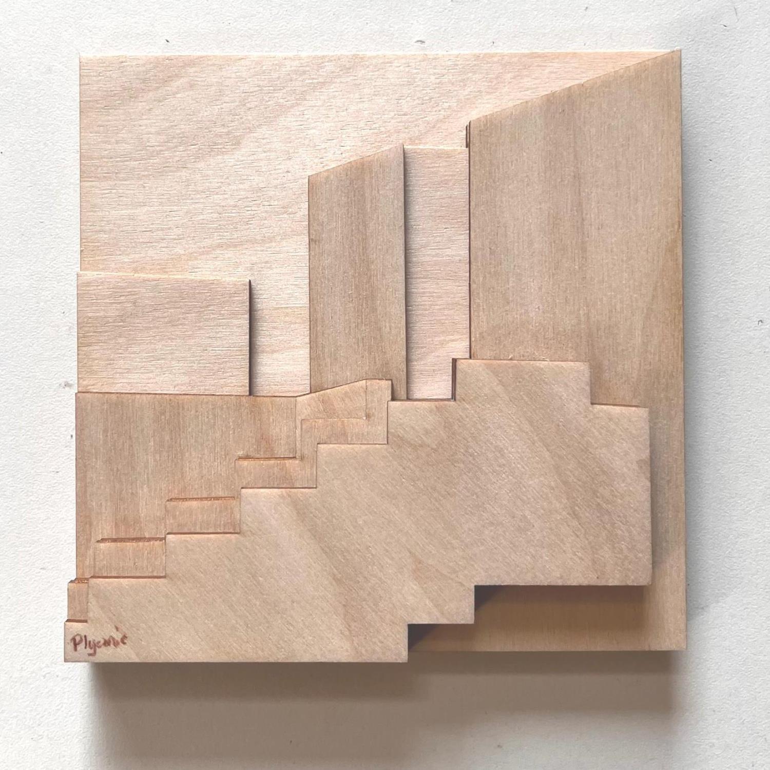 Helen, connue sous le pseudonyme Plyconic, est une artiste basée à Londres et possède une formation en design de mobilier. Sa passion pour l'art a éclos après une visite captivante au Centre Barbican de Londres, où l'interaction de la lumière avec l'architecture l'a profondément inspirée. Ce moment décisif l'a conduite à utiliser le contreplaqué, matériau de ses créations, pour capturer et recréer les jeux de lumière observés.