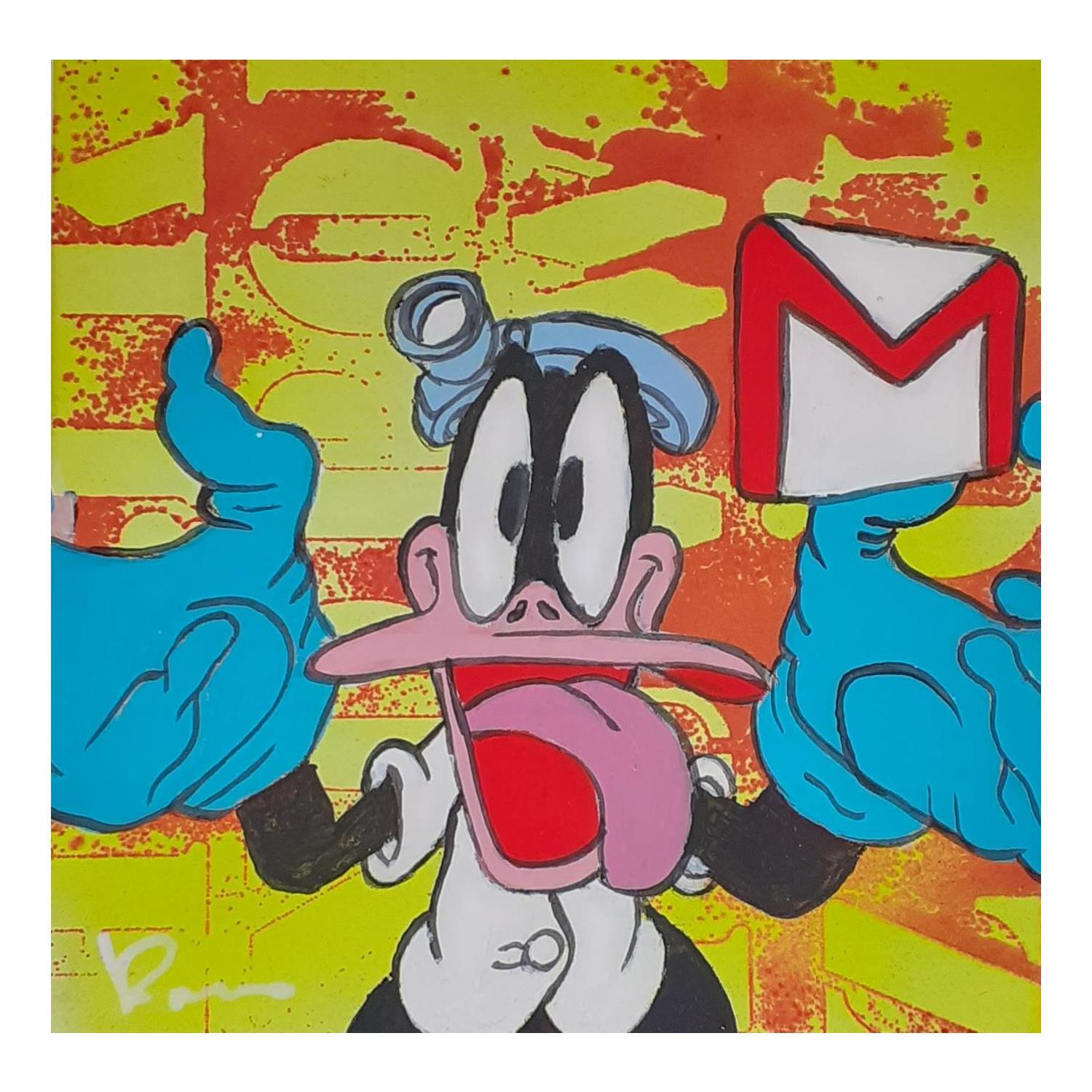 L'artiste a utilisé la technique Acrylique pour créer cette peinture petit format sur Papier de style Pop-art sur les thèmes Animaux, Icones Pop.