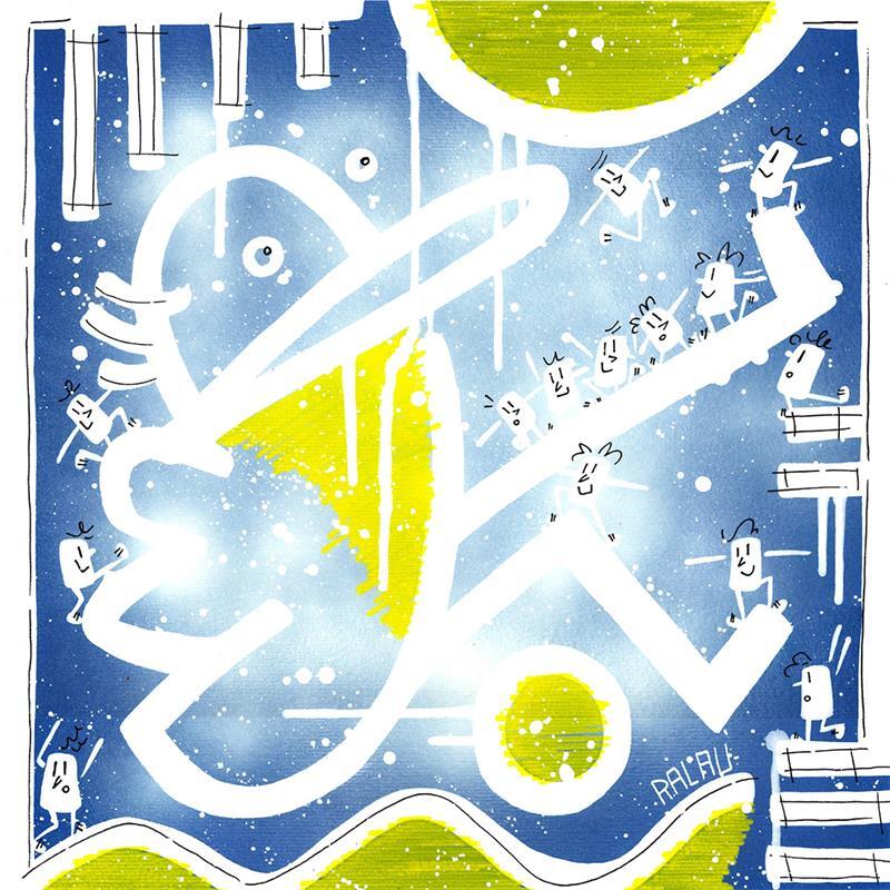 L'artiste a utilisé la technique Acrylique pour créer cette peinture petit format sur Papier de style Pop-art sur les thèmes Animaux, Paysages, Scènes de vie.