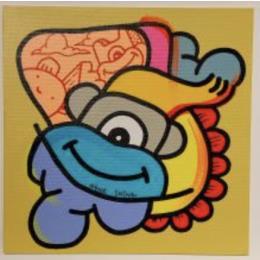 L'artiste a utilisé les techniques Acrylique, Posca pour créer cette peinture petit format sur Toile de style Pop-art.