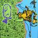 L'artiste a utilisé différentes techniques pour créer cette peinture petit format sur Toile de style Pop-art sur le thème Icones Pop.