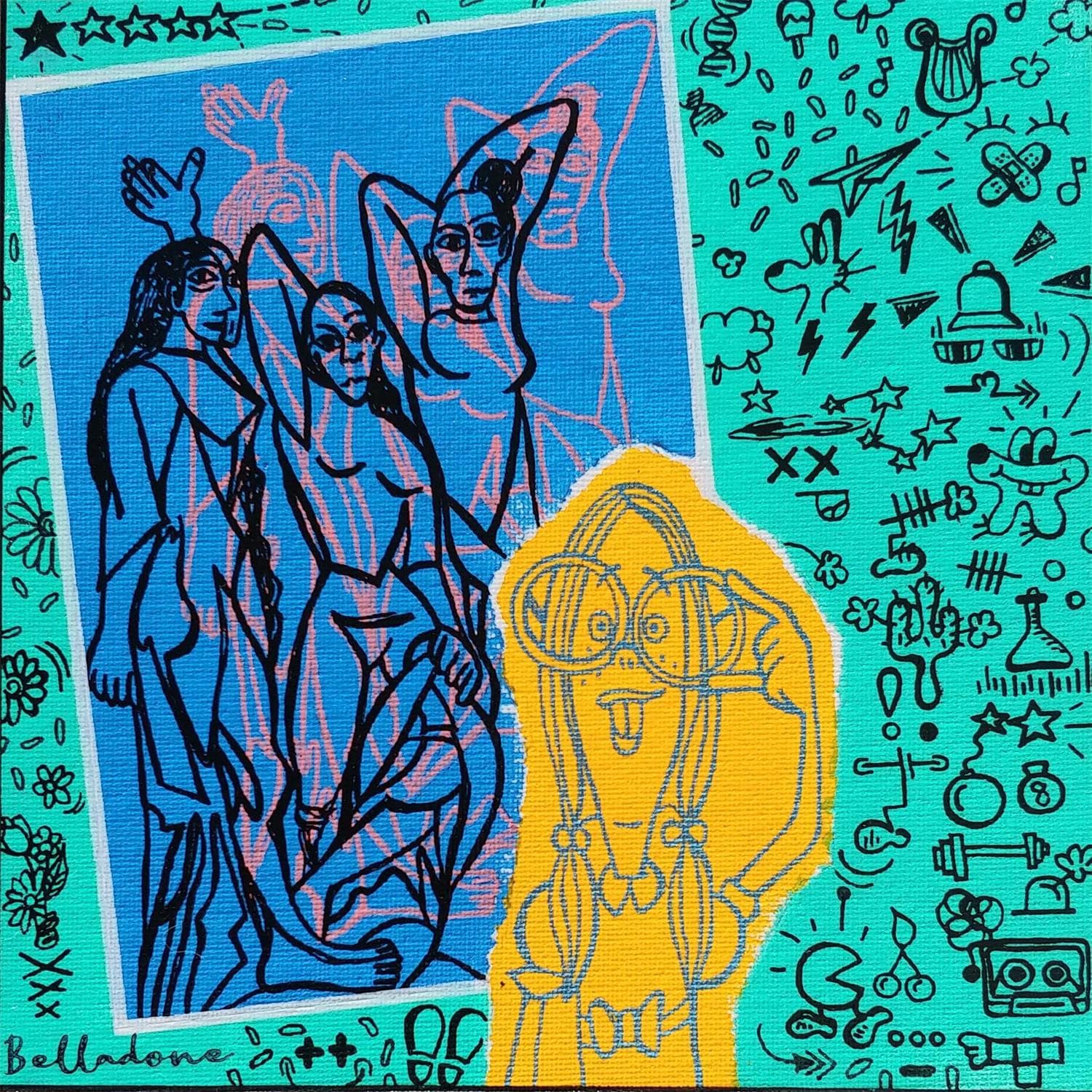 Cette oeuvre d'art contemporain unique et originale "Les demoiselles de récré" a été réalisée par l'artiste contemporain Belladone.