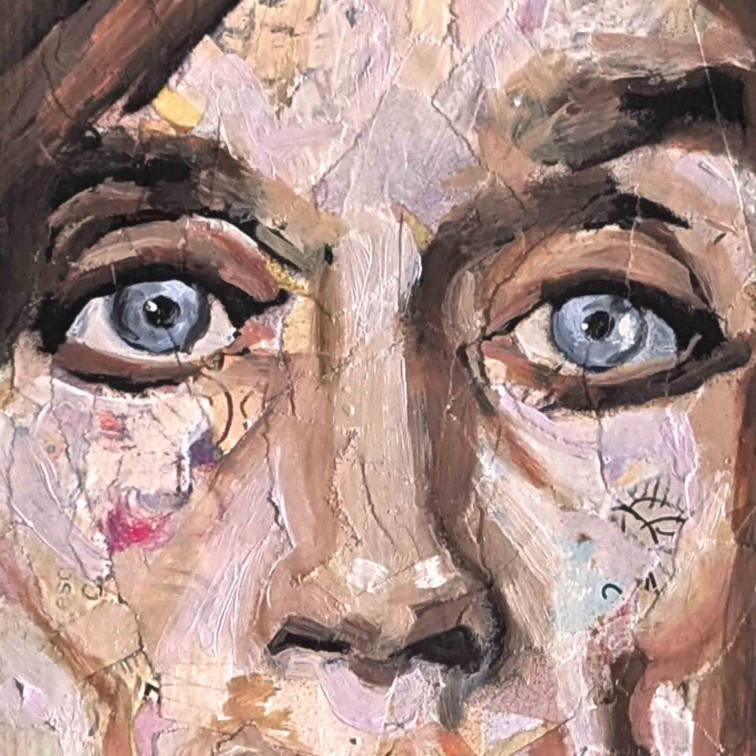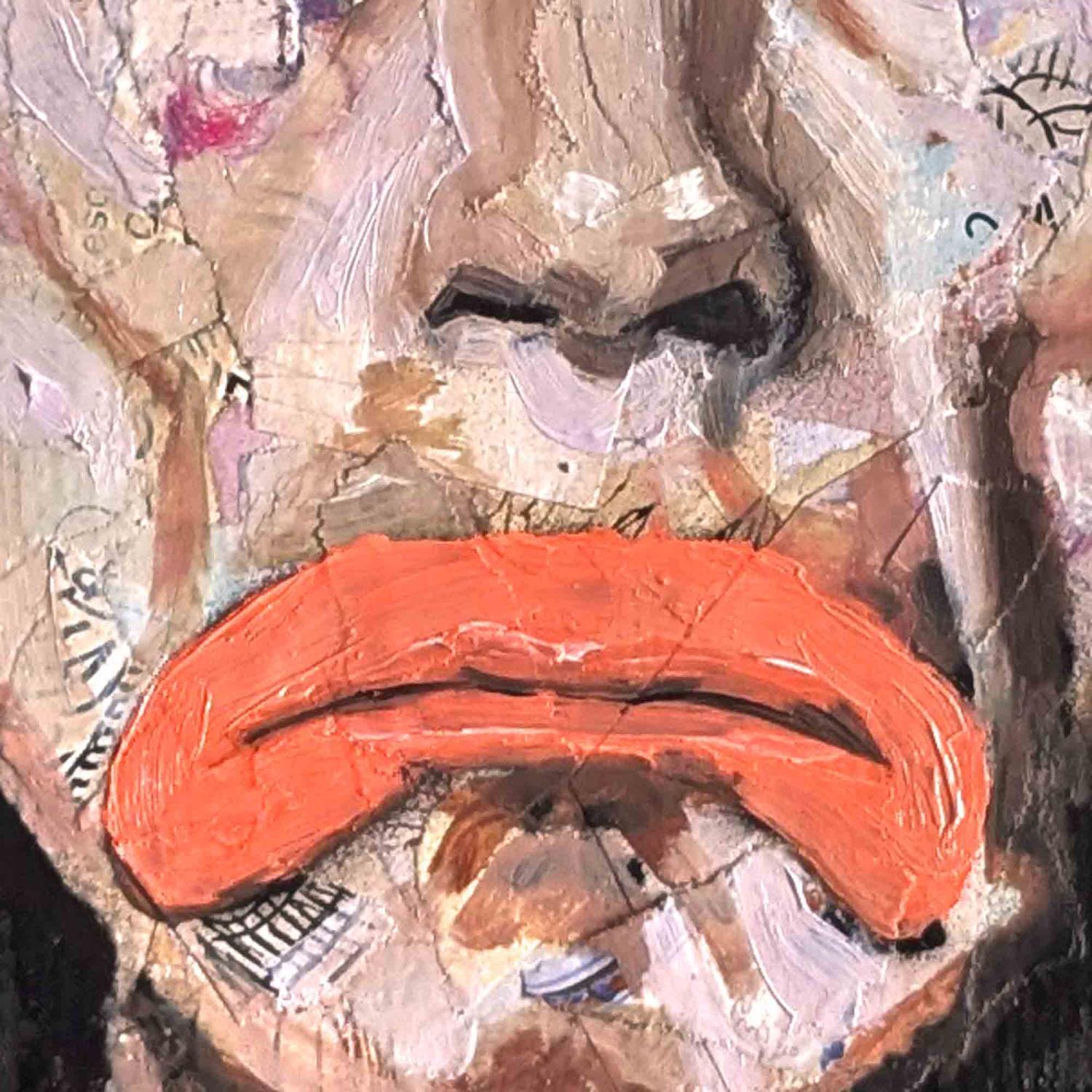 Pour sa réalisation l'artiste a utilisé du collage, de l'encre et de la peinture à l'huile sur papier épais. Le format de ce portrait est 25x25cm.