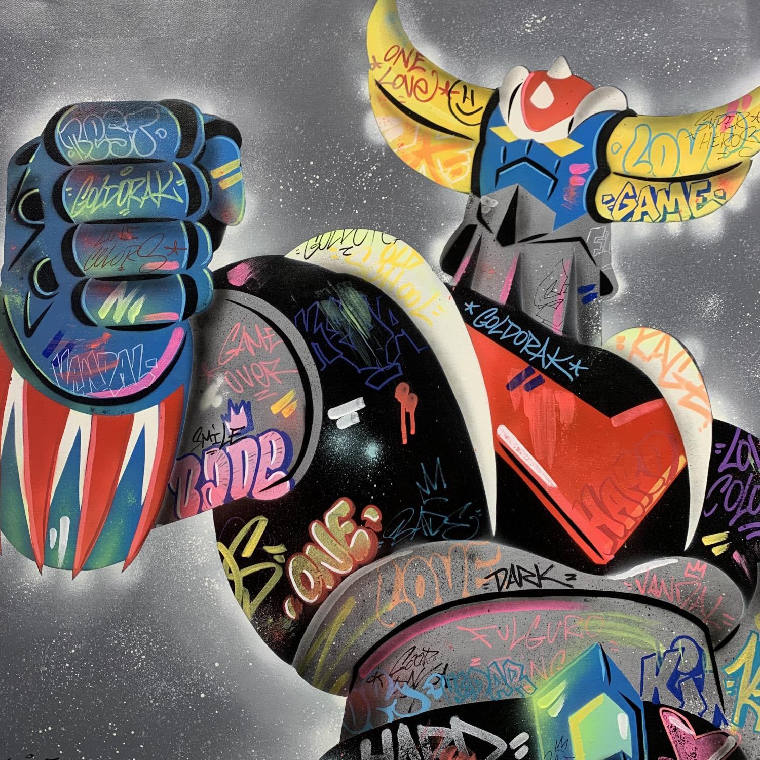 Cette oeuvre d'art contemporain unique et originale "Goldorak" a été réalisée par l'artiste contemporain Kedarone.